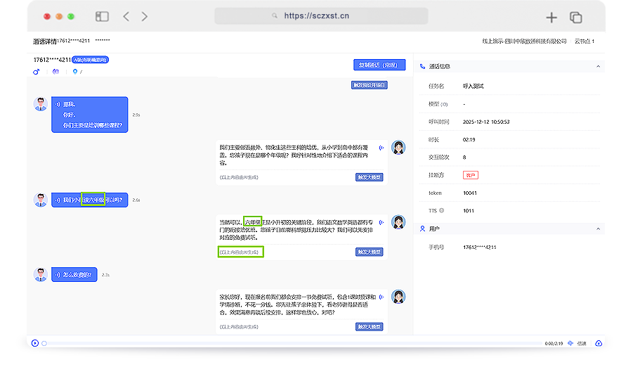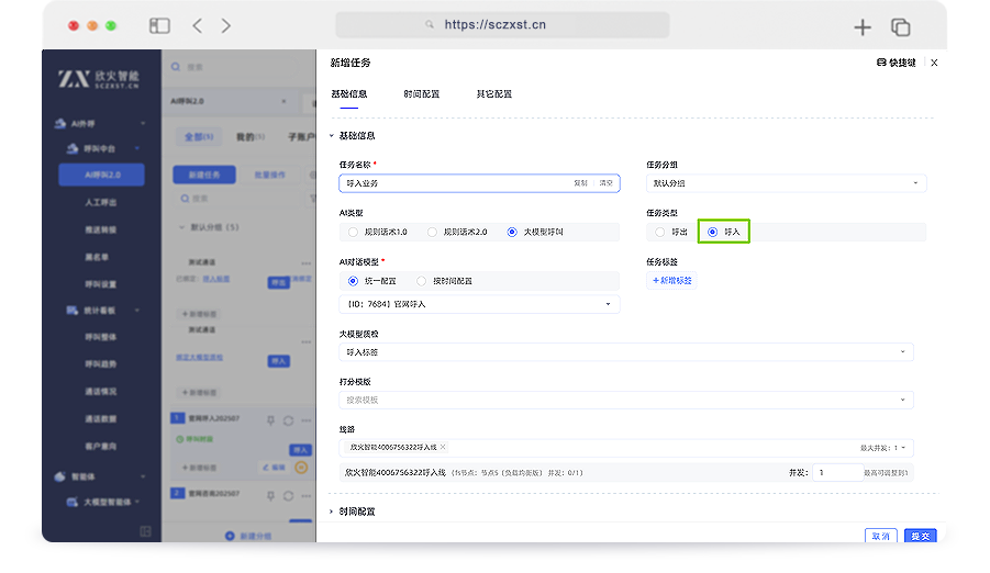 接入了市面上主流的:豆包、deepseek、通义千问、智谱等十余个版本大模型智能体,可用于呼出及呼入场景